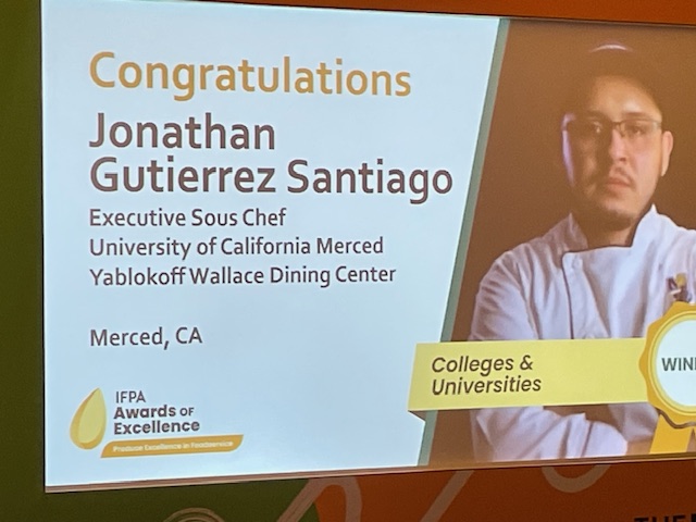 First, we proudly received a Silver Award at the National Association of College and University Food Services (NACUFS) National Conference. This accolade celebrates our excellence in Outreach and Education. Additionally, Chef Jonathan was honored with the Produce Excellence Award at the International Fresh Produce Association (IFPA) Conference in Monterey. His recognition marks our second successful nomination with the IFPA, following last year’s win by Chef Santana Diaz of UC Davis Health for Produce Excellence in Hospitals.