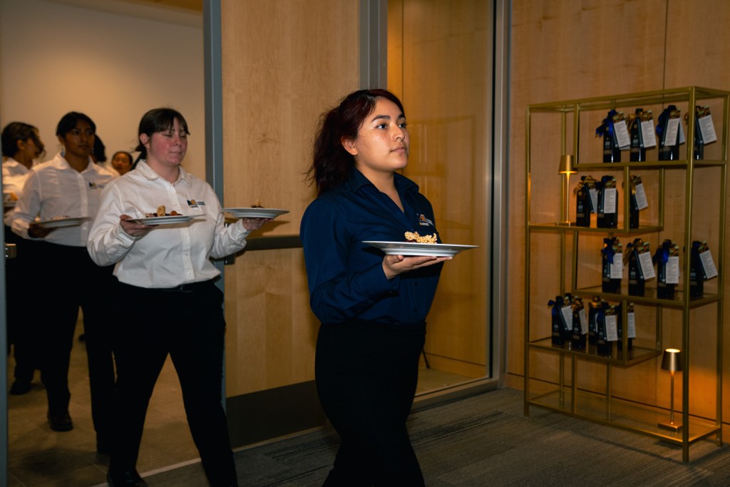 The evening began with a private screening of The Food That Fuels, Chef Ed Porter’s short film showcasing the stories of San Joaquin Valley farmers, UC Merced’s innovative Smart Farm, and the UC Merced dining student and chef team. The film has already been accepted into 12 film festivals worldwide, including in Japan, England, Spain, and Canada. It has received three awards to date, including two “Short Film of the Month” honors, one from Bridge Fest in Vancouver and the other from Gothamite in New York, and one for “Musical Score of the Month,” solidifying its impact on a global scale. Many attendees, including lifelong Merced residents, shared that the film opened their eyes to the vital role local farmers play in our region’s food system.