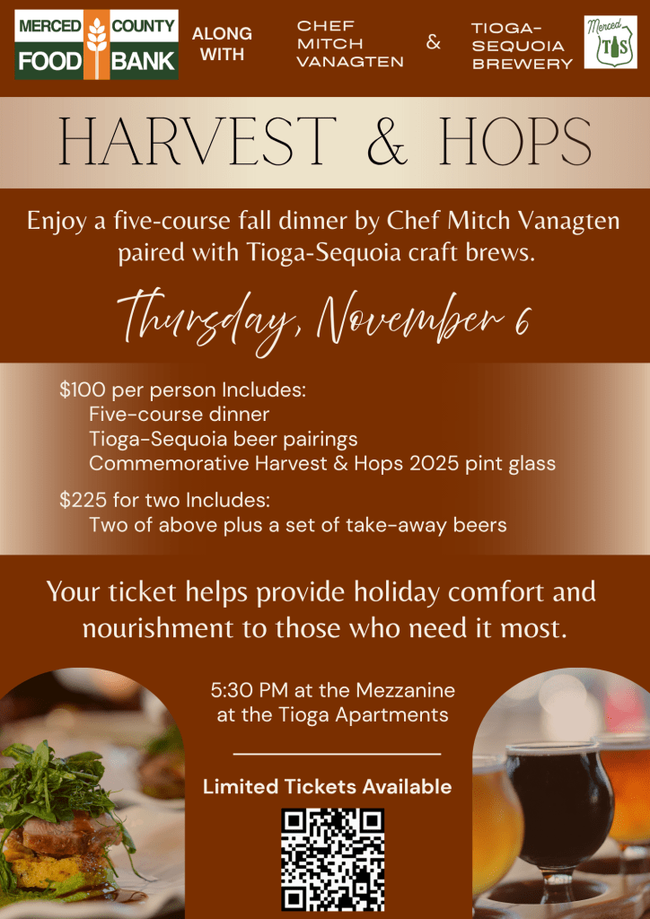 Thanks to donated ingredients, donated beer, and donated venue space, nearly all proceeds went directly to the Merced County Food Bank. In the end, the dinner raised enough funds to provide 10,000 meals to local families.